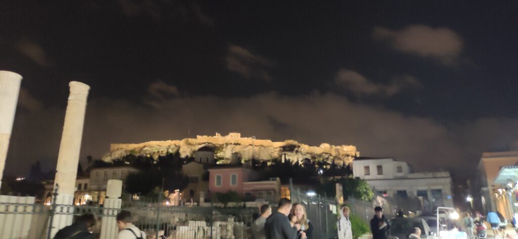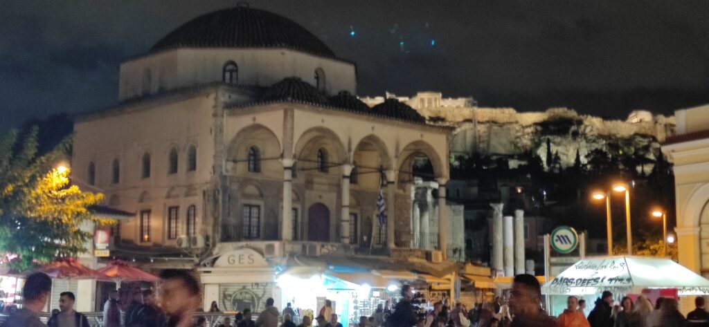 Nakon toga nastavili smo prema centru i došli smo na trg Monastiraki s kojeg se lijepo vidi akropola po noći.