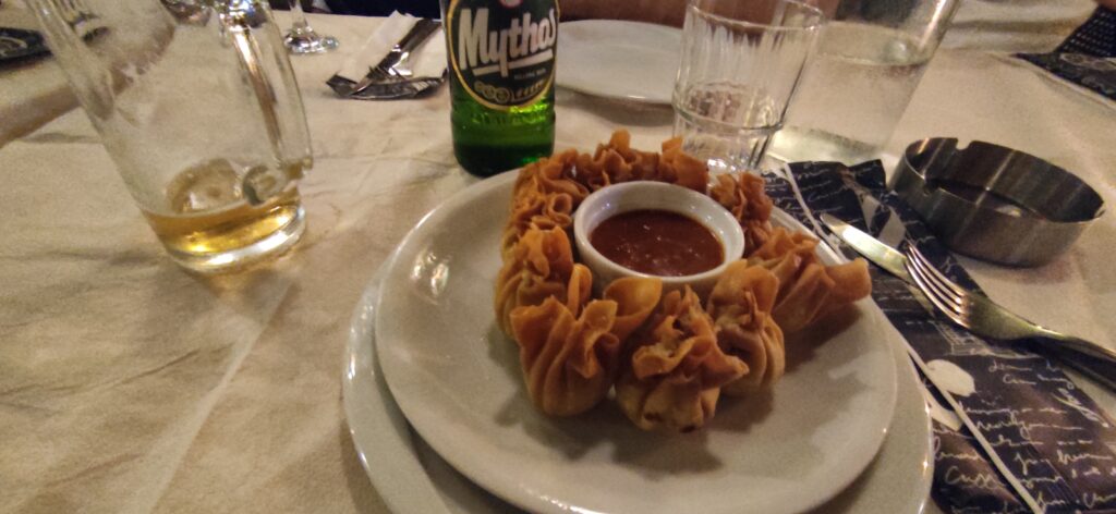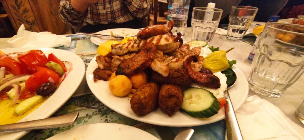 Nakon što smo malo razgledali grad noću, otišli smo na večeru u jedan restoran. Tamo smo naručili grčku platu za 2 dvije osobe koja je toliko bila velika da je ostalo pola toga još na tanjuru.
