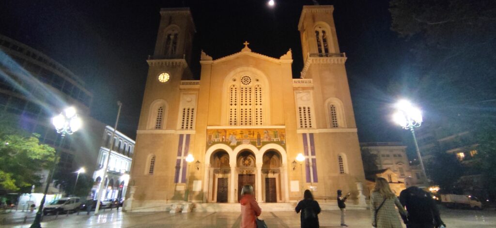 Nakon toga smo se prošetali centrom Atene i to ulicom Ermou za koju mi se čini da je posvuda. Taj centar kao da je samo ulica Ermou okružuje. Otišli smo i do pravoslavne Grčke katedrale koja je nažalost bila zatvorena pa je vodička rekla da ćemo se ujutro vratiti do nje ponovno. Grčka pravoslavna Crkva ima titulu arhiepiskopije. Osnivač je sv. Pavao, a predstojnik Arhieskop atenski i cijele Grčke, Jeronim II. Pored katedrale nalazi se još jedna mala crkva koja se zove Agios Eleftherios nazvana je Mikri Metropoli (mala gradska crkva ). Agios Eleftherios je jedna od rijetkih crkava u glavnom gradu koja je od svoje izgradnje zadržala svoj izvorni oblik. Izgrađena je u 13 stoljeću. Nakon toga prošetali smo se centrom grada i opet ulicom Ermou. Nakon male šetnje vratili smo se u hotel.