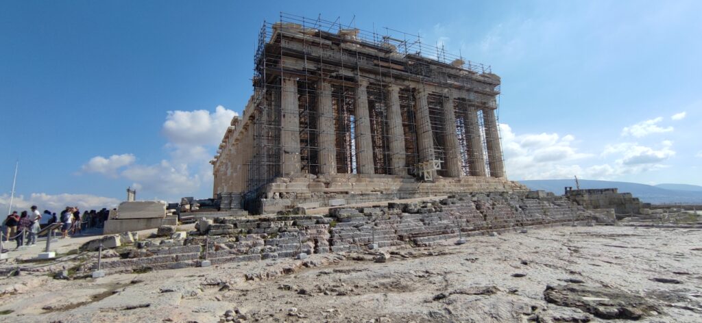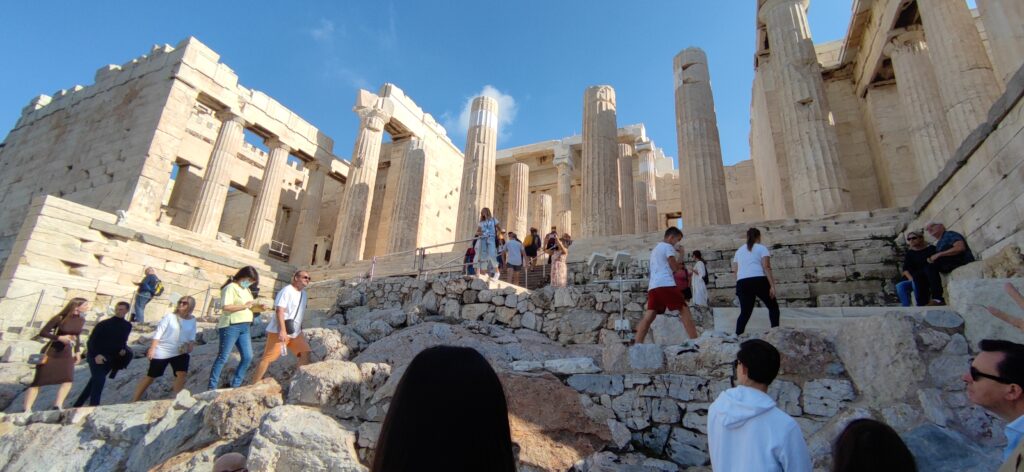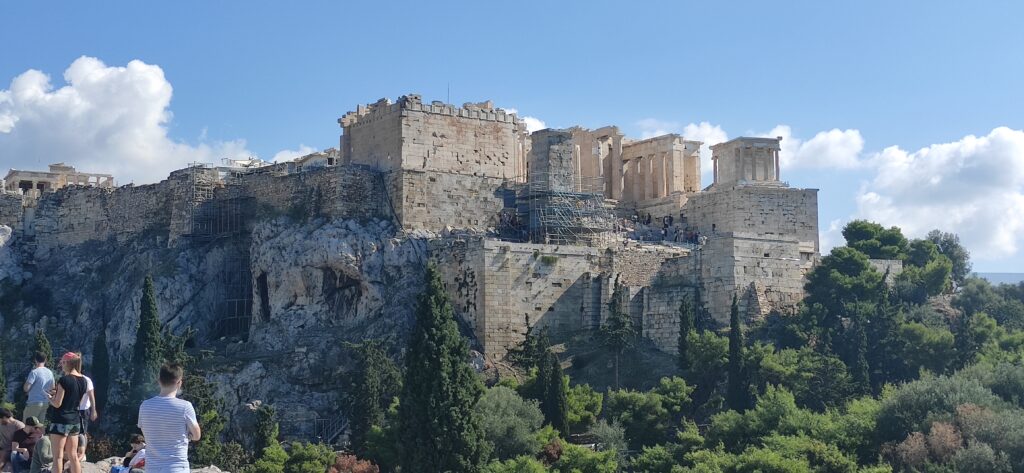 Nakon kratkog razgleda grada autobusom uputili smo se prema najpoznatijem spomeniku u Ateni, a to je atenska akropola. Kada smo stigli naš vodič nam je počeo pričati najzanimljivije priče o akropoli. Citirao nam je stihove na starogrčkom i pokušao nam je što bolje približiti povijest i značenje akropole. Kada stojite u podnožju akropole i slušate povijest te građevine i slušate stihove počinju vas trnci prolaziti. Naš vodič je toliko načitan i toliko uživa u svom poslu da je doživljaj bio još veći.
