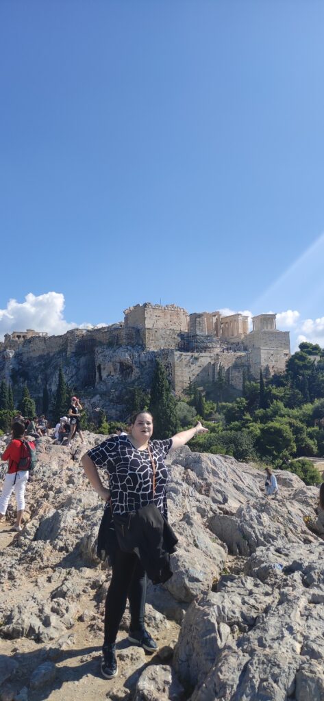 Ispod akropole je muzej pod UNESCOVOM zaštitom. Na akropoli sam napravila hrpu slika i videa što dokazuje koliko me očarala ta građevina. Nasuprot akropole je brdo Arg s kojeg se jako dobro vidi atenska akropola u cjelini. Navodno su na tom brdu žene plakale za svojim sinovima koji su umrli u ratu i s rukama su greble lice od tuge. Na tom brdu smo bili nakon akropole (vidi slike). Na akropoli ima i dio koji su Rimljani posvetili svom caru Augustu. Na akropoli ima i mjesto s kojeg se vidi cijela Atena. S tog mjesta se vidi kako je velika Atena.