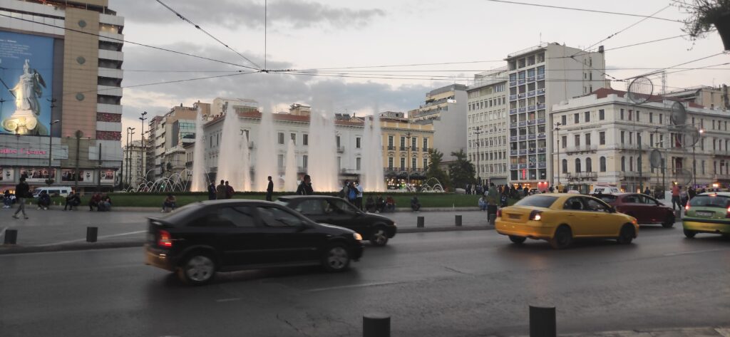 Nakon što smo se smjestili, krenuli smo u noćni obilazak Atene. Prvo što smo vidjeli je bio trg Omonia koji je bio u blizini našeg hotela i tržnica pored koje smo prošli. Trg Omonia je relativno novi trg jer je tek 2017 godine dovršen. On je moderan trg s fontanama u Ateni.