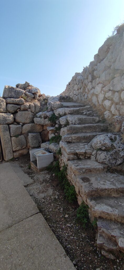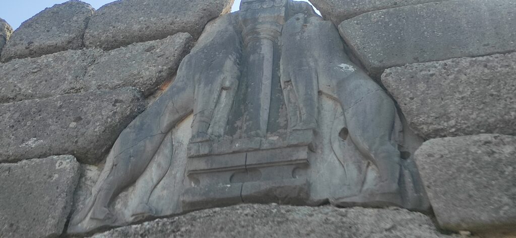 Nakon Atrejeve riznice uputili smo se do najpoznatije građevine meni bar, do Mikene. Prvo gdje smo stali u Mikeni i gdje nam je vodič počeo objašnjavati su Lavlja vrata. Lavlja vrata je naziv za monumentalni ulaz od gradskih zidina u Mikeni iz 1.400-1.300 pr. Kr. Nisam puno zapamtila iz priča vodiča. Jedino sam zapamtila da je govorio o ovim lavovima na vratima i njihovom simbolu tj. što simboliziraju.
