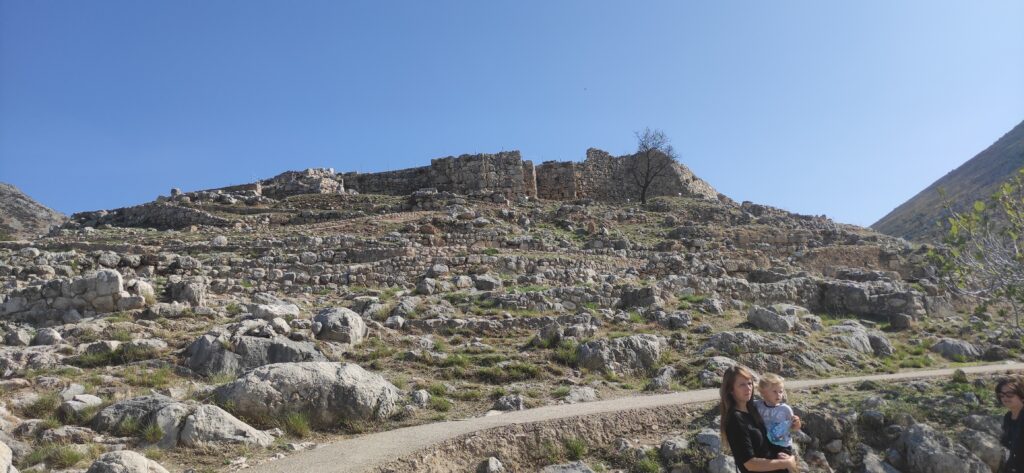 Prošetali smo po zidinama Mikene i vidjeli prekasan pogled koji se pruža sa te građevine na planine okolo. Nasuprot je i jedna planina koja svojim obrubima izgleda kao Agamenon koji leži. Smatra se da je to Agamenon i da on tu leži i čuva Mikenu kao njen čuvar. Legenda tj. mit govori da nakon što se Agamenon vratio u Troju da ga je njegova žena ubila sa svojim ljubavnikom. Kasnije će se njegov sin osvetit majci radi tog ubojstva i ubiti će svoju majku.