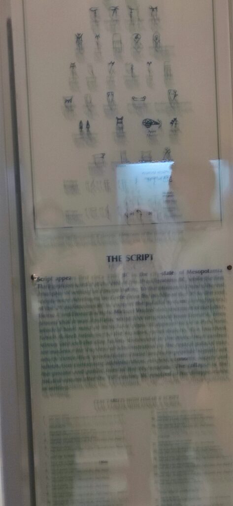 Vidjeli smo mačeve, razne posude. Tu smo i vidjeli pismo B koje je otkrio i dešifrirao 1952. do 1953. Michael Ventris. To pismo je bilo karakteristično za mikenu. Linear B je grafijski sustav koje se koristio za zapisivanje mikenskog grčkog jezika. Linear B večim je dijelom slogovno pismo. Pločice su pornađene u arhivima palača u Knosu, Mikeni, Pilu te na posuđu iz Tebe, Tirinta i Eleuzine. Neke su pronađene na glini iako je to prava rijetkost rekao nam je naš vodič. Sadržaj pločica se odnosi na upravnu službu : popisivanja, zaliha hrane, darova božanstvima.
