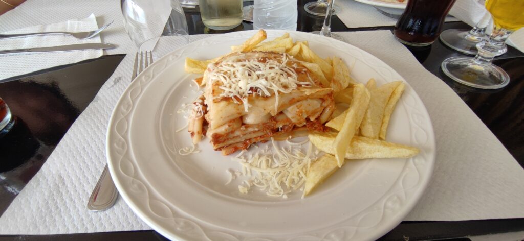 Nakon Mikene otišli smo u jedan restoran na ručak. Tamo sam naručila grčki pastistio da ga probam. To je nešto slično našim lazanjama. Probala sam i grčki limoncello i njihovo vino. Sve skupa s kolom misli da me nije više od 22 eura koštalo. Za stolom smo sjedili s jednim starijim bračnim parom. Muž je išao poslovno u Grčku pa je odlučio da idu preko agencije jer je jeftinije i usput je poveo ženu da vidi malo Grčku. Iz njegov priča sam shvatila da oni puno putuju. Skoro svuda su bili mi je rekao i sugerirao mi je neke lokacije( npr. Andaluziju… ) koje obvezno moram posjetiti. On tvrdi da je jeftinije putovati preko Agencije nego sam i zato su oni išli preko Agencije.