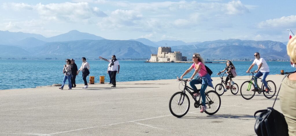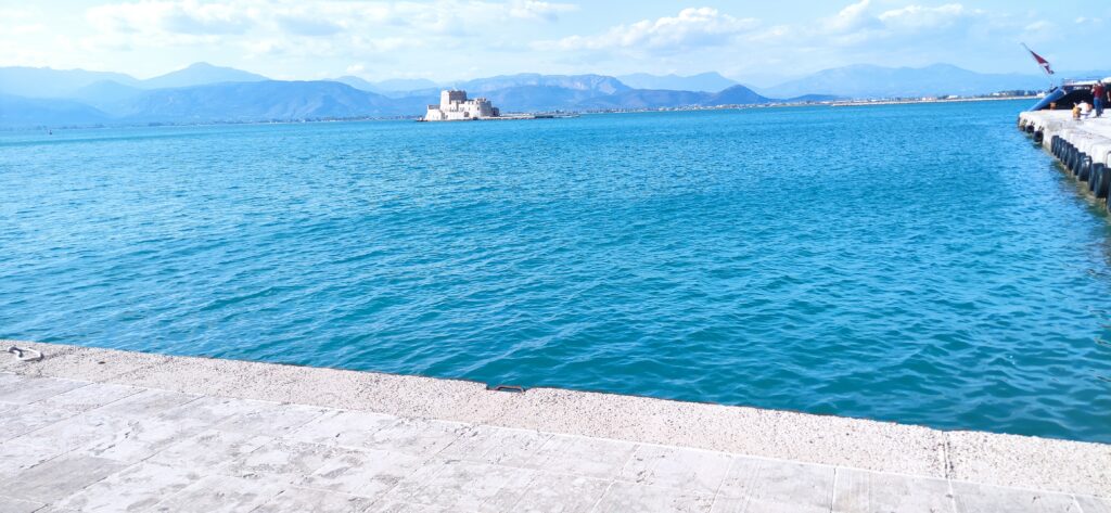 Malo me gradić podsjeća na neki naš obalni grad na moru, ali budući se nisam kupala i ne poznajem taj grad dobro nije neki dojam na mene ostavio. I ovdje postoji jako dobar sladoled, odmah nam je naša vodička to naglasila, ali ovaj puta ga nisam probala. Inače Nauplion se nalazi na poluotoku Peloponezu u Grčkoj. Lučki je grad koji se nalazi uz padine brežuljaka blizu sjevernoga kraja Argolidskog zaljeva. Grad je bio nekada prijestolnica Grčke i to od 1829. do 1834. On je sa 13.822 glavni grad prefekture Argolida i pokrajine Nauplion. Smiješten je u Argolidskom zaljevu. Većina staroga grada nalazi se na poluotoku koji kao da strši u zaljev. Inače ovaj poluotok oblikuje prirodno zaštićeni zaljev koji je učvršćen molovima koji su ljudi izradili. Područje koje okružuje Nauplion je bilo još u antičko doba naseljeno. Ima malo znakova tih ostataka unutar grada. Tijekom Grčkog rata za nezavisnost, Nauplion je bio glavno uporište koje godinama htio osvojiti Theodoros Kolokotronis. Akronauplion i Palamidi predali su se zbog gladovanja. Poslije osvajanja grad je postao sjedište privremene grčke vlade dok ga je Kapodistrias učinio glavnim gradom Grčke 1829. Poslije njegova ubojstva 1831. u Nauplionu nastalo je razdoblje anarhije. To razdoblje je trajalo do stupanja na dužnost kralj Otto koji je uspostavio Kraljevinu Grčku. Prijestolnica je ostao do 1834. kada je kralj Otto odlučio premjestiti prijestolnicu u Atenu. Inače je vrlo sunčan pa je popularna destinacija tijekom vikenda u zimi. On je i ribarska i prometna luka iako je primarno zaposlenje lokalnog stanovništva turizam. Ima dvije plaže na kraju poluotoka suprotno od glavnog dijela grada