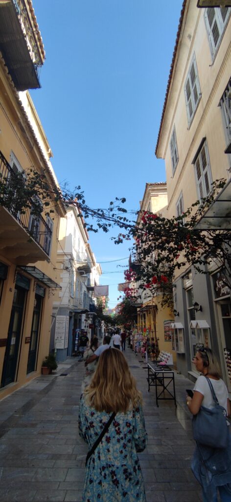Jedino što me je tamo oduševilo je što smo napokon našli knjigo u Ateni i grčkoj mitologiju koju sam odmah kupila. Tamo nam je kratko vodič ispričao povijest toga grada. Spomenu je kako je njihov ministar bio predsjednik Grčke neko vrijeme i da su podigli ustanak protiv njega. Došli smo do glavnoga trga gdje nam je to sve ispričao što sam zapamtila. Nakon toga su nam dali 1 sat da se prošećemo i upoznamo s gradom. Tamo smo lutali nekih sat ili sat i pol po tim dućanima u tom gradu. Tamo sam opet pala u napast da kupim suvenire. Tamo sam nabavila kugle za nećake i neki privjesak i te knjige koje sam dugo tražila. Najčudnije od svega mi je to što smo cijelu Atenu prošli i tamo nismo niti jednu brošuru našle o Ateni i Grčkoj nego smo je pronašle tek u ovom gradiću Nauplionu.