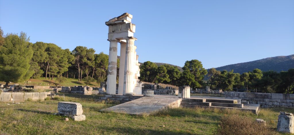 Razlog te dobe akustičnosti je otkriven. Vjerovalo se da je to zato što je kazalište bilo izgrađeno na padinama brda Kynortio na nagibu od 26 stupnjeva. No istraživači s Georgija Institut of Technology otkrili su da je pravi razlog te dobre akustičnosti sama sjedišta. Koraci djeluju kao zvučna zamka filtrijajući bilo koju pozadinsku buku pri stvaranju fenomena nazvanog virtualni pitch što omogućava veću jasnoću zvuka što olakšava gledateljima u stražnjem redu da čuju što se događa na pozornici. Ja sam sjedila u prvom redu kada je naš vodič pljeskao pa sam sve dobro čula tako da nisam vidjela tu dobru akustičnost, ali izgledom kazalište je jako lijepo. Nakon kazališta smo otišli do tog čuvenog lječilišta od Asklepija koje je privlačilo ljude iz cijele Grčke koje su liječili svećenici. Svećenici su izgradili impresivan kompleks objekata, uključujući hramove kupke, atletske prostore i kazalište. Došli smo do ostataka tog lječilišta i mjesta gdje su i bile terme i taj atletski prostor. ( vidi sliku).