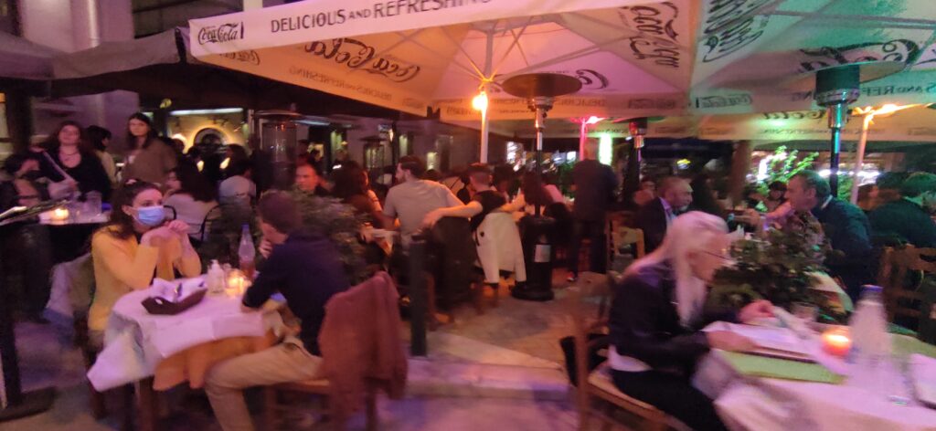 Nakon dosta vožnje stigli smo u Atenu i odlučili smo da odemo svi negdje jesti u Ateni. Nakon što smo se mi cure presvukle krenuli smo u noćni razgled Atene i u potragu za restoranom u kojem ćemo jesti. Kada sam išla noću po toj četvrti gdje mladi idu van bila sam zadivljena koliko mladih ide tamo van i koliko je živa Atena po noći usprkos koroni. Nitko tamo nije nosio masku vani od mladih. Mene je oduševila Atena po noći. Da bar sam ja sama mogla se tamo odšetati koji od ovih dana, ali ne možeš jer se još ne znaš tamo snalaziti dobro. Naša vodička Maja je našla neki lijepi restoran
